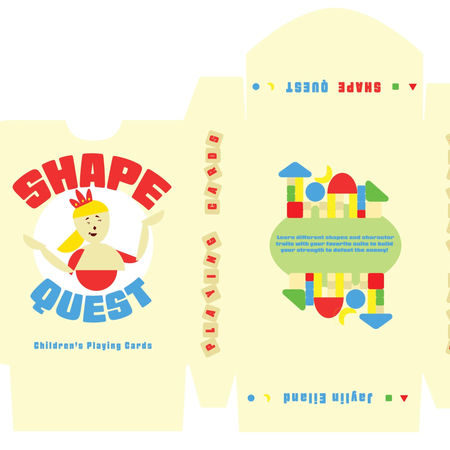 Shape Quest is a children's playing card deck that teaches children while they have fun. Each suit helps the children develop different characteristics and learn what it means to be brave, strong, courageous, kind, etc. The game's overall quest allows children to discover the power of working together to achieve a common goal.